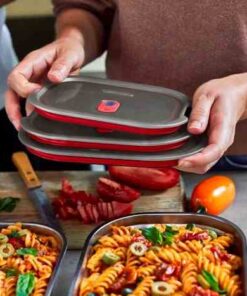 – jest wielofunkcyjny – nadaje się do przechowywania posiłków, jako lunch box, do zapiekania, podgrzewania i mrożenia,