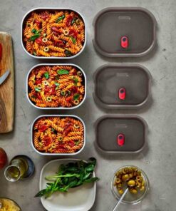 – jest wielofunkcyjny – nadaje się do przechowywania posiłków, jako lunch box, do zapiekania, podgrzewania i mrożenia,