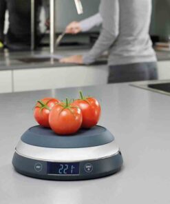 Waga kuchenna Joseph Joseph ślicznie wygląda na blacie kuchennym może być ozdobą, która przyciągnie wzrok gości.