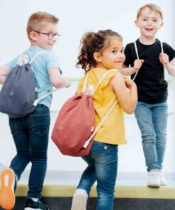 – zamykana na zaciągane sznureczki umocowane podobnie jak w plecaku, umożliwiajace wygodne przenoszenie na plecach , w ręku lub zawieszanie na wieszaku,